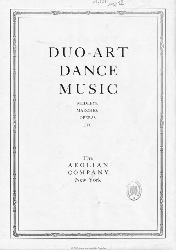 Título propio: Catalog of music for the pianola, pianola piano and aeriola, Volume I