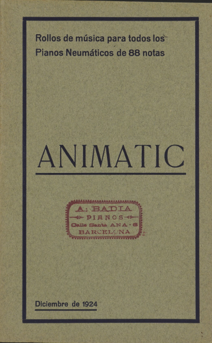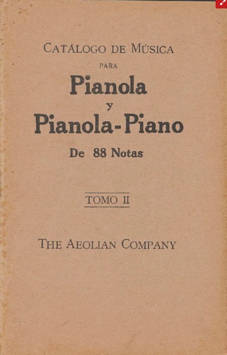 Título propio: Catálogo de música para pianola y pianola-piano de 88 notas. Tomo II