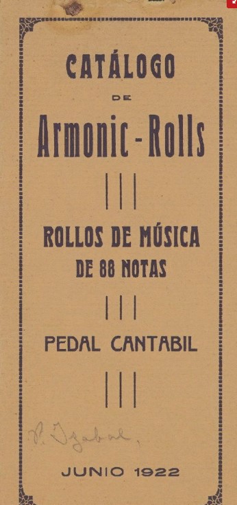 Título propio: Catálogo general de Rollos de Música Iberia para aparatos pianistas y planos combinados de todas marcas, medida standard de 65 notas